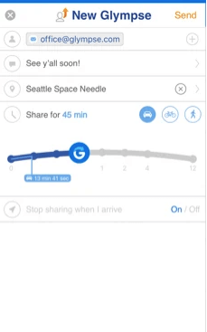- You can send your location, called a Glympse, along with a message to anyone in your contacts list within seconds.